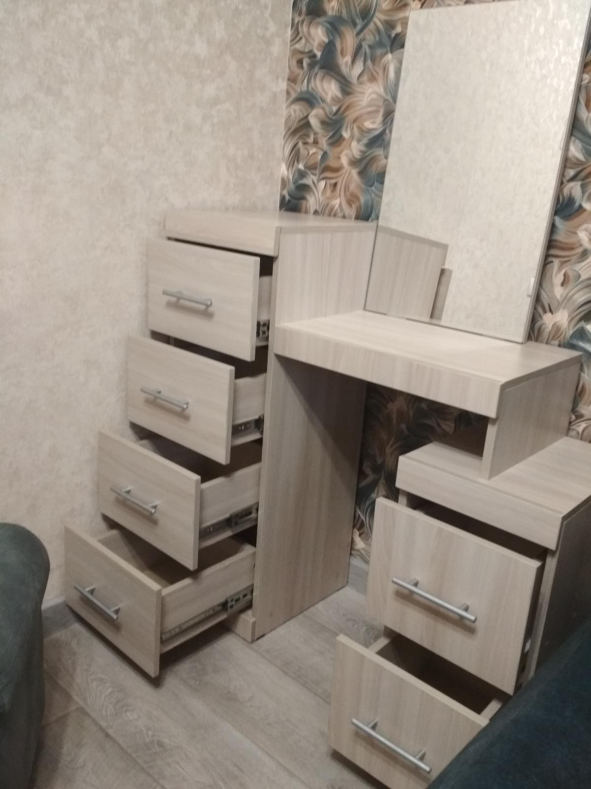 Магазин отличный. Заказывали мебель по своим размерам. Собирали сами. Все детали подписаны, схема имеется.  Единственное, что несколько раз напоминали, что нам надо в горизонтальном отражении туалетный столик, а схему присылали в обычном расположении. В итоге прислали схему в горизонтальном отражении. Заказывали ещё тумбу прикроватную Лотос и пуф. И ещё получили тумбу Рондо (на фото) за 1р. ))