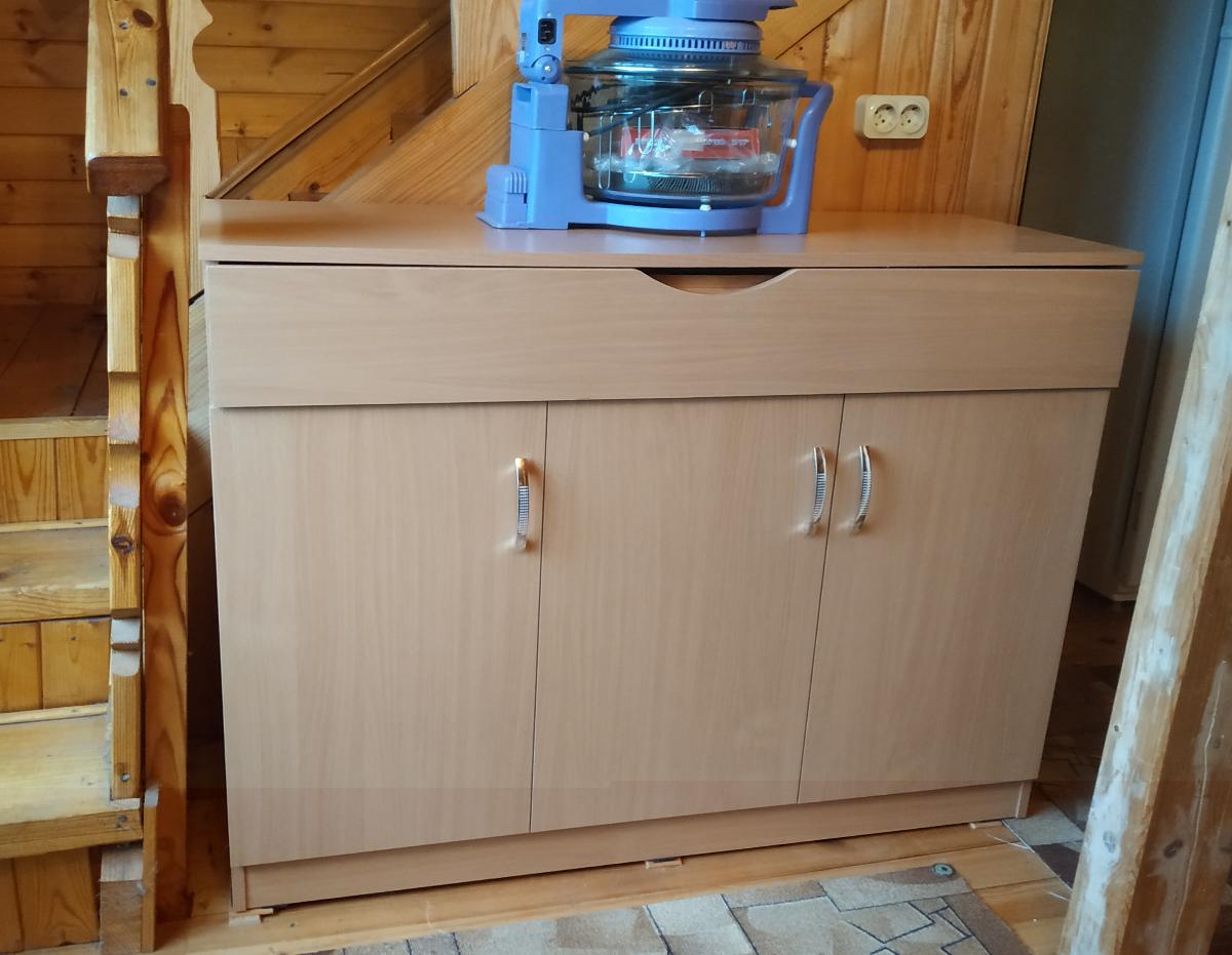 Купили эту тумбу для дачной террасы. Хорошо подошла, т.к. можно было выбрать и размеры, и цвет.Предполагаем установить на ней электрическую мини-печь и аэрогриль, а на внутренних полках и в выдвижном ящике много места для посуды и других кухонных предметов. Так что тумба очень удобная, советуем приобретать!