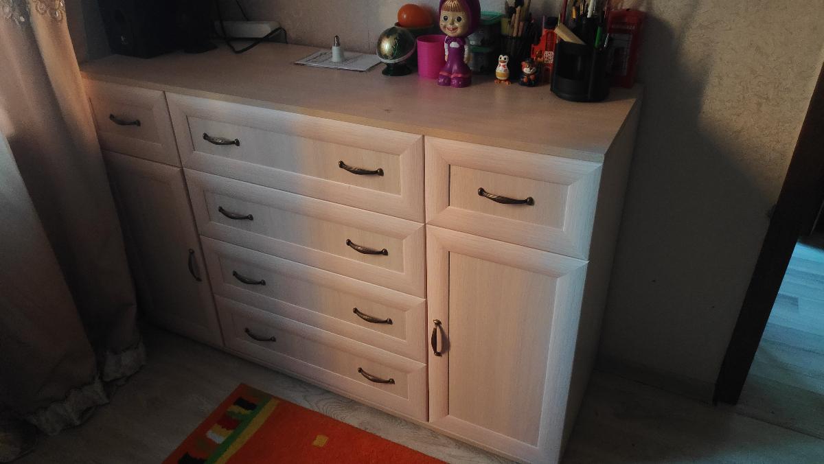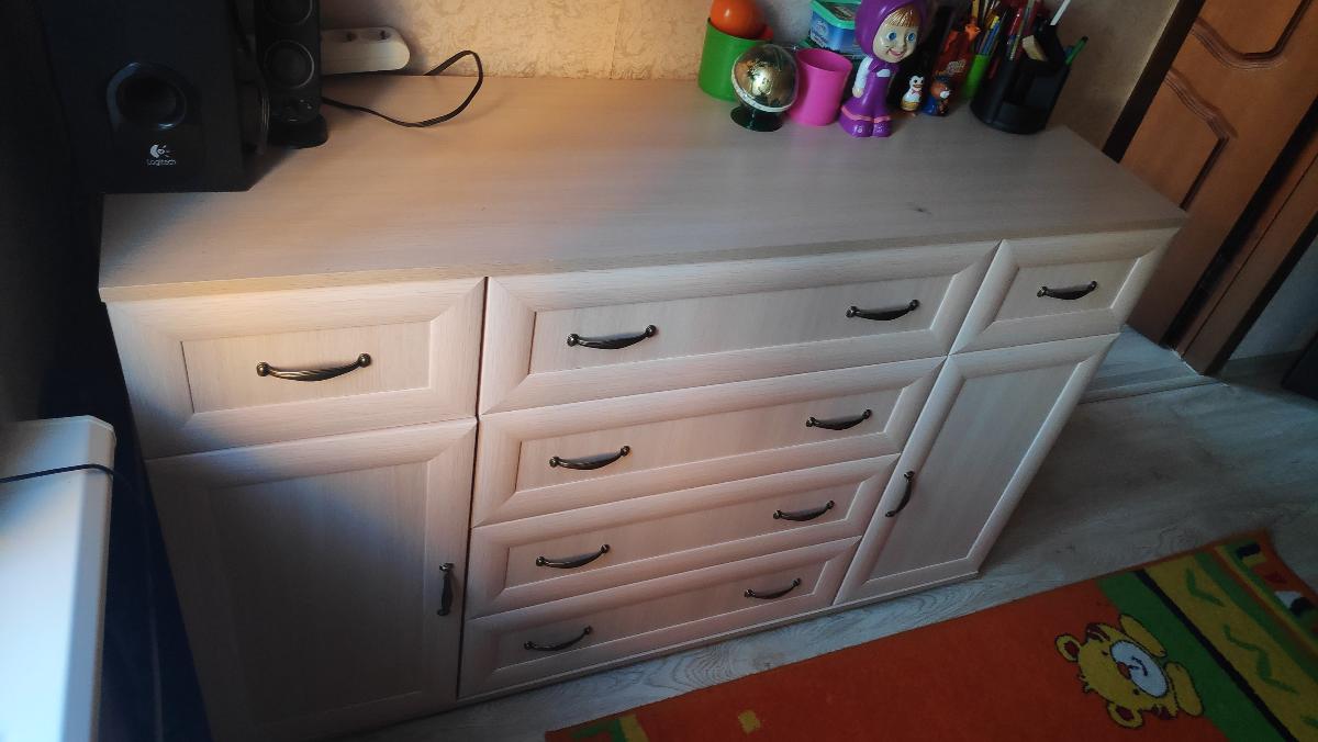 Добротный комод, брал по акции. Привезли в срок. Комплектация полная, собирал сам. К комоду нареканий нет, единственное пришлось удалять много маркировочных наклеек с элементов комода, там где они были видны. В остальном всем доволен.Заказ 00000368971.