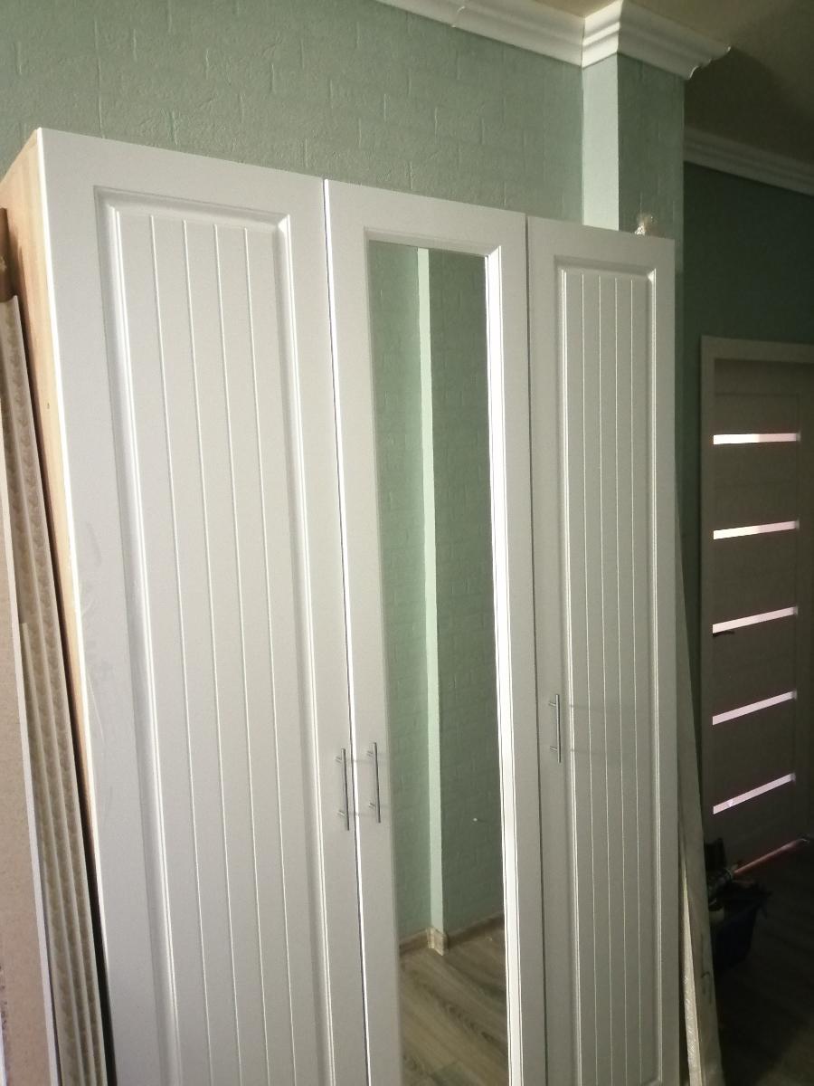 Сделали под мои параметры, довольна всем, согласна с предыдущим отзывом, что зелёное зеркало с обратной стороны шкаф не красит. Очень сложная сборка, собирали сами, запутались с петлями, они оказались разные для разных дверей, в описании  это не было указано. Брали петли с доводчиком, не нарадуюсь. Брали дополнительно штангу в два ряда, нижняя оказалась не удобна, слишком маленькое расстояние, сняла, не пользуемся. Двери были затянуты в плёнку. Трудно оттирать наклейки с деталей. А в целом шкаф красивый, стоит 2 месяца, никаких претензий.