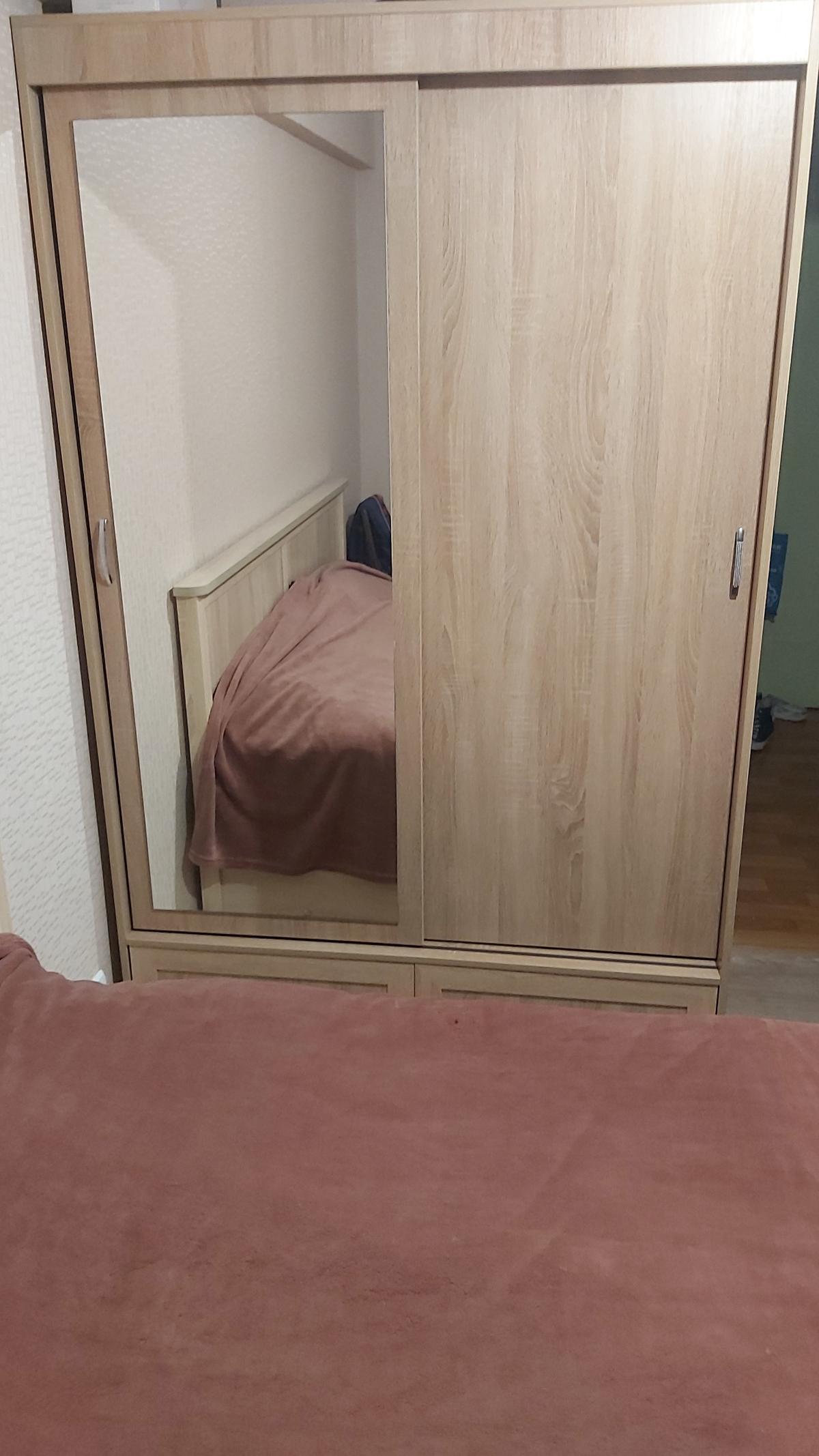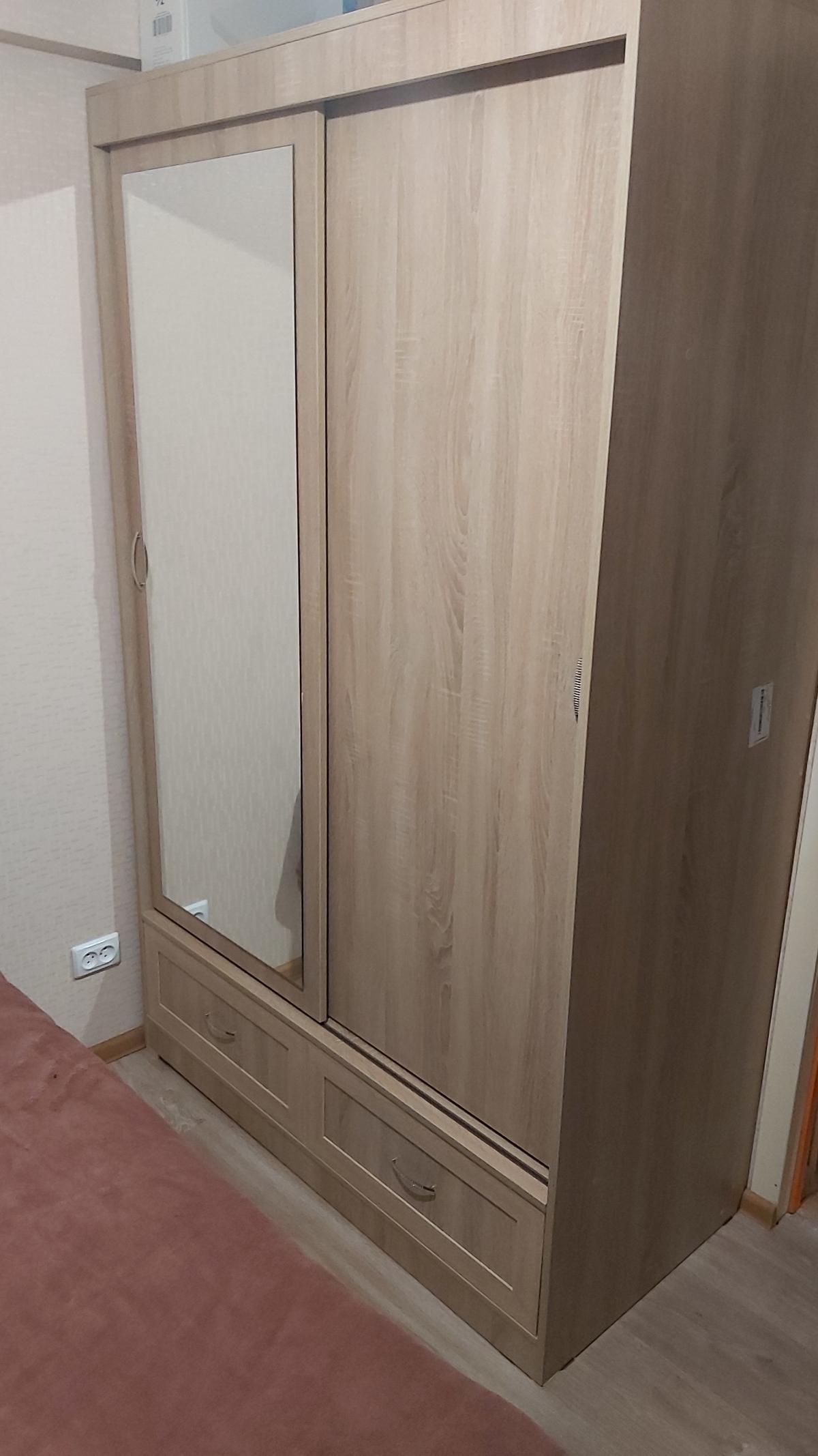 По окончанию ремонта в комнате и полного избавления от мебели купила этот замечательный шкаф-купе в свою комнату. Комната маленькая, но шкаф своими габаритами и раздвижными дверями помог сэкономить пространство. Благодаря антресолям и просторным полкам вместилось огромное количество вещей, а зеркало на двери увеличило зрительно комнату. Покупала в конце февраля 2020 года, номер заказа 271779 (по внутренним данным 00000364368 от 26.02.2020) Очень советую этот шкаф всем, он небольшой, но вместительный, а дизайн-сочетание ольхи и молочного дуба очень освежает комнату.