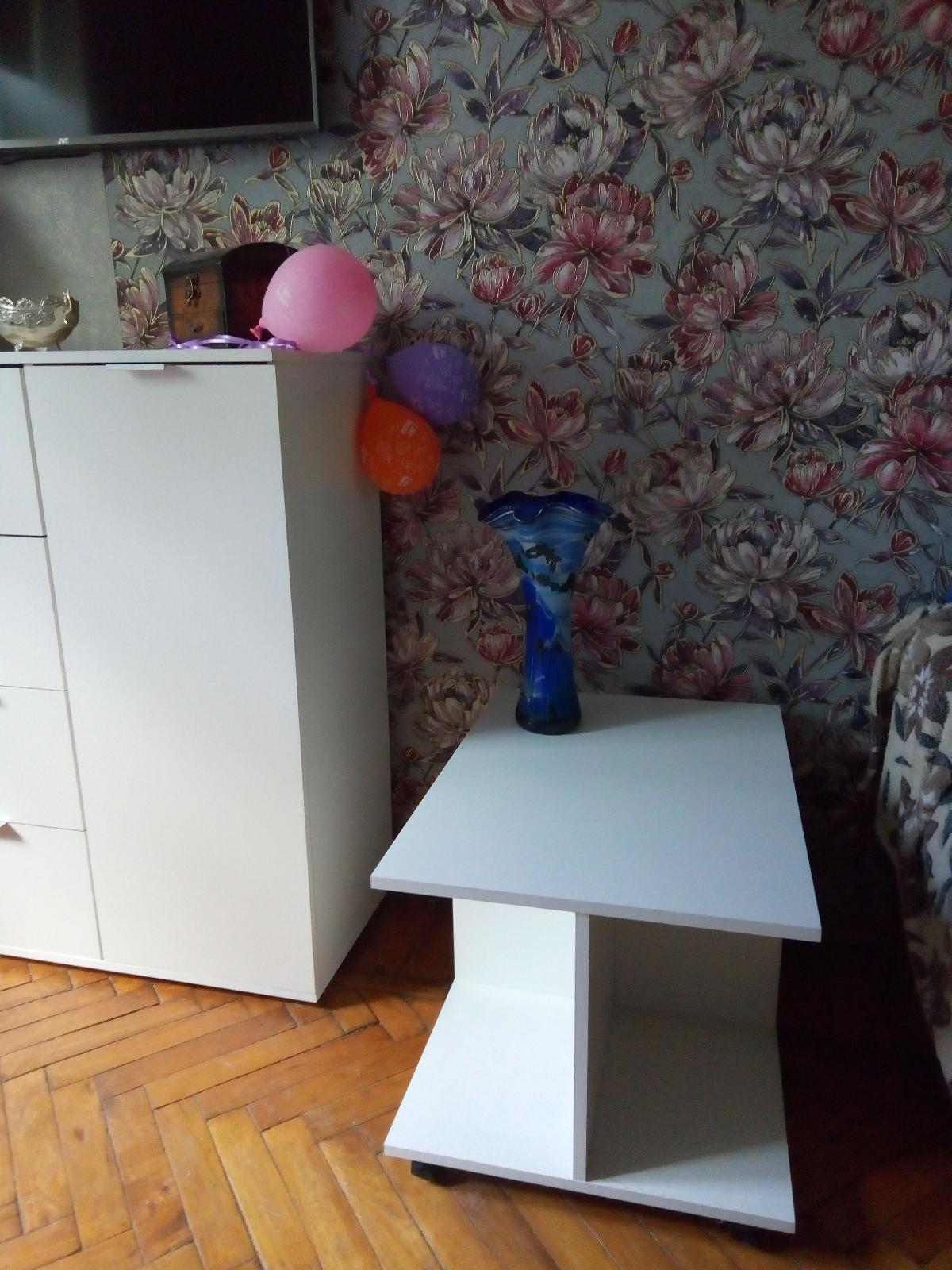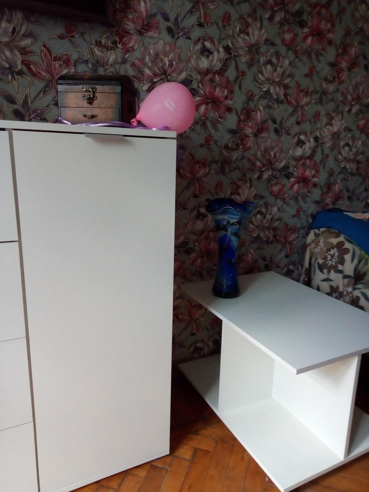 Замечательный,стильный столик!Лаконичный дизайн и функциональность,мобильный(колесики)Удобно хранить книги ,журналы,да и кофе попить-удовольствие!Покупала с комодом и тумбочкой в спальню,очень довольна!