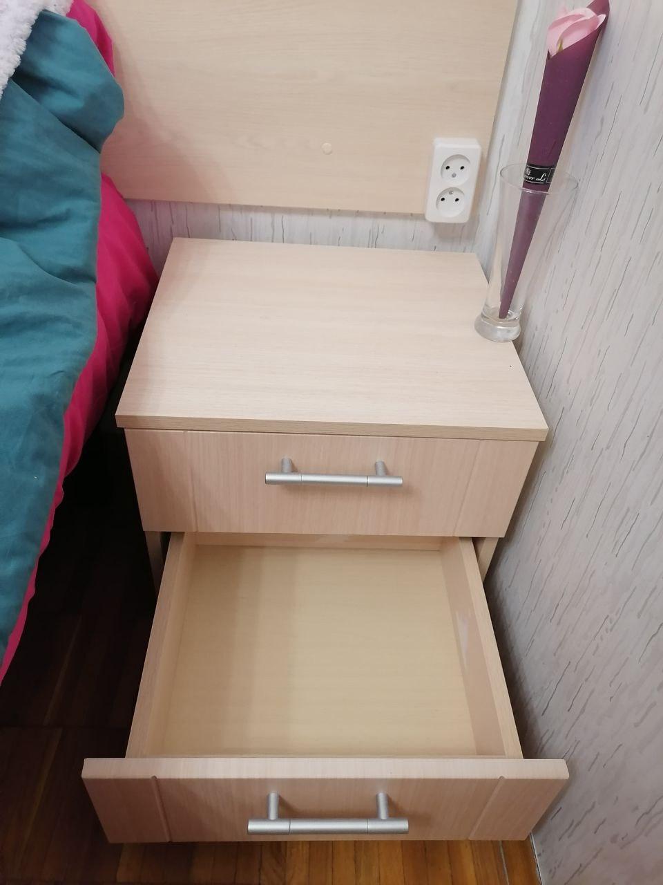 Замечательная маленькая прикроватная тумбочка. Полки легко выезжают, собирается очень просто.