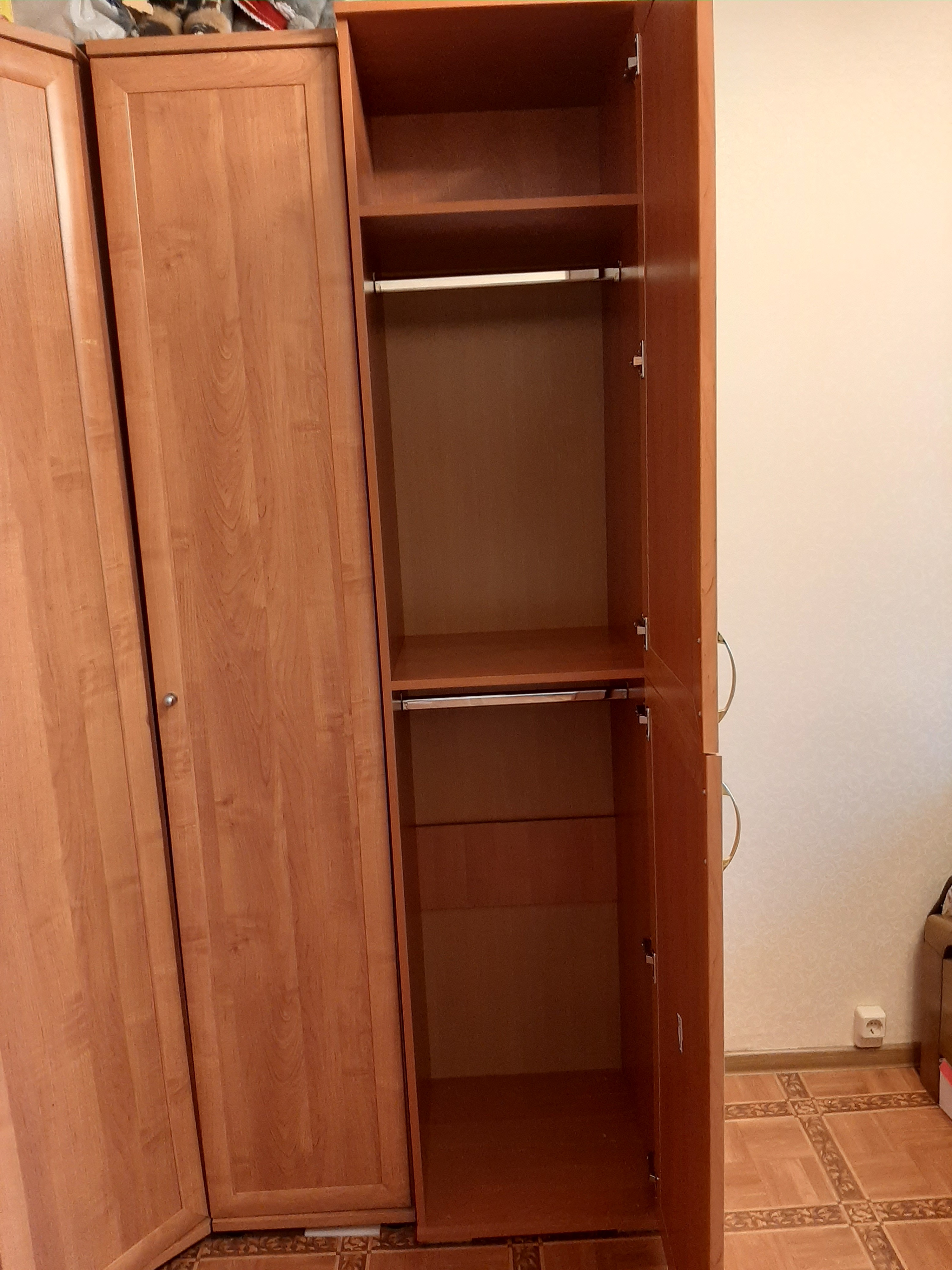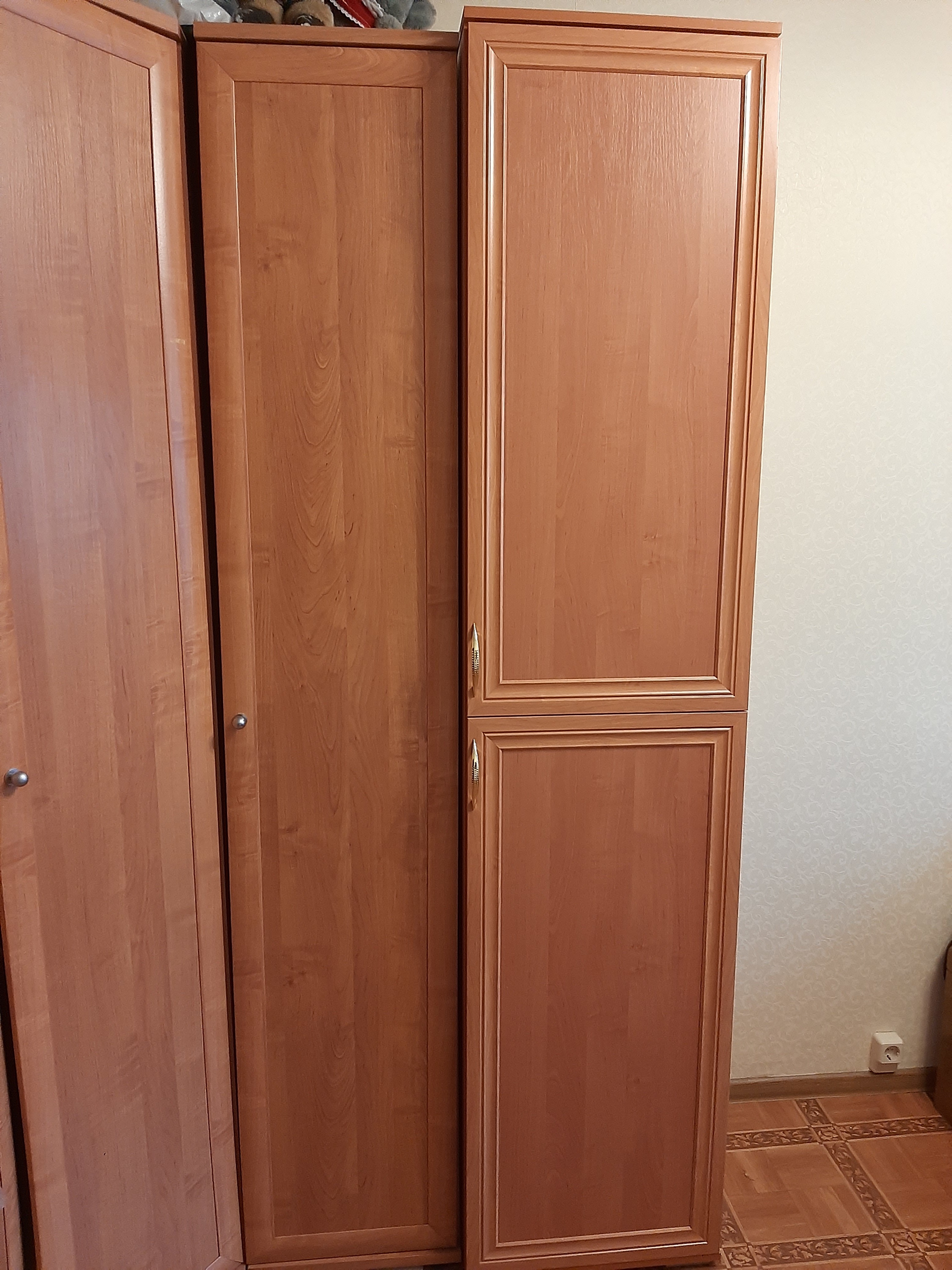 Шкаф понравился. Цвет  Ольха Горская.  Удобный, симпатичный. Собирали сами, не сложно. Комплектация полная, привезли всё.