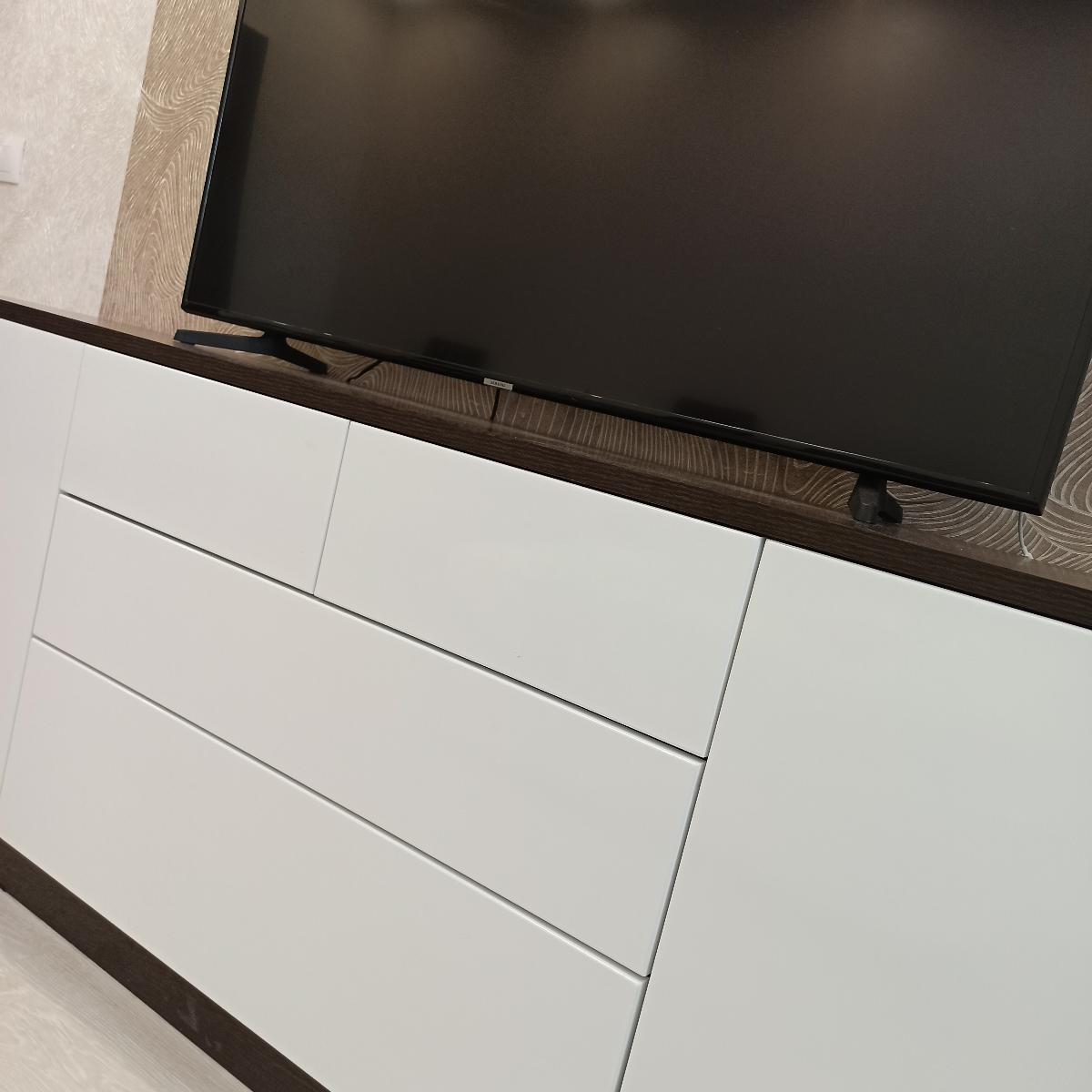 Искали тумбу под тв на кухню. Было много требований: чтобы подошла по размеру в длину и ширину и хотелось конкретную высоту для удобства просмотра тв, чтобы подходила к кухонному гарнитуру, чтобы было много полок для колонок и сабвуфера, а также закрытый шкафчик для всяких инструкций и др.мелочей без ручек. Ничего подобного в готовом виде не нашли, или было слишком дорого. Узнали, что сделать на заказ в нужном размере, цвете и материале - выходит не заоблачная цена. Рискнули заказать и не прогадали. Сработали быстро и качественно. Остались довольны, пользуемся, очень удобно. Пока никаких нареканий к качеству. И даже кот облюбовал себе полочку и прекрасно проводит там время.