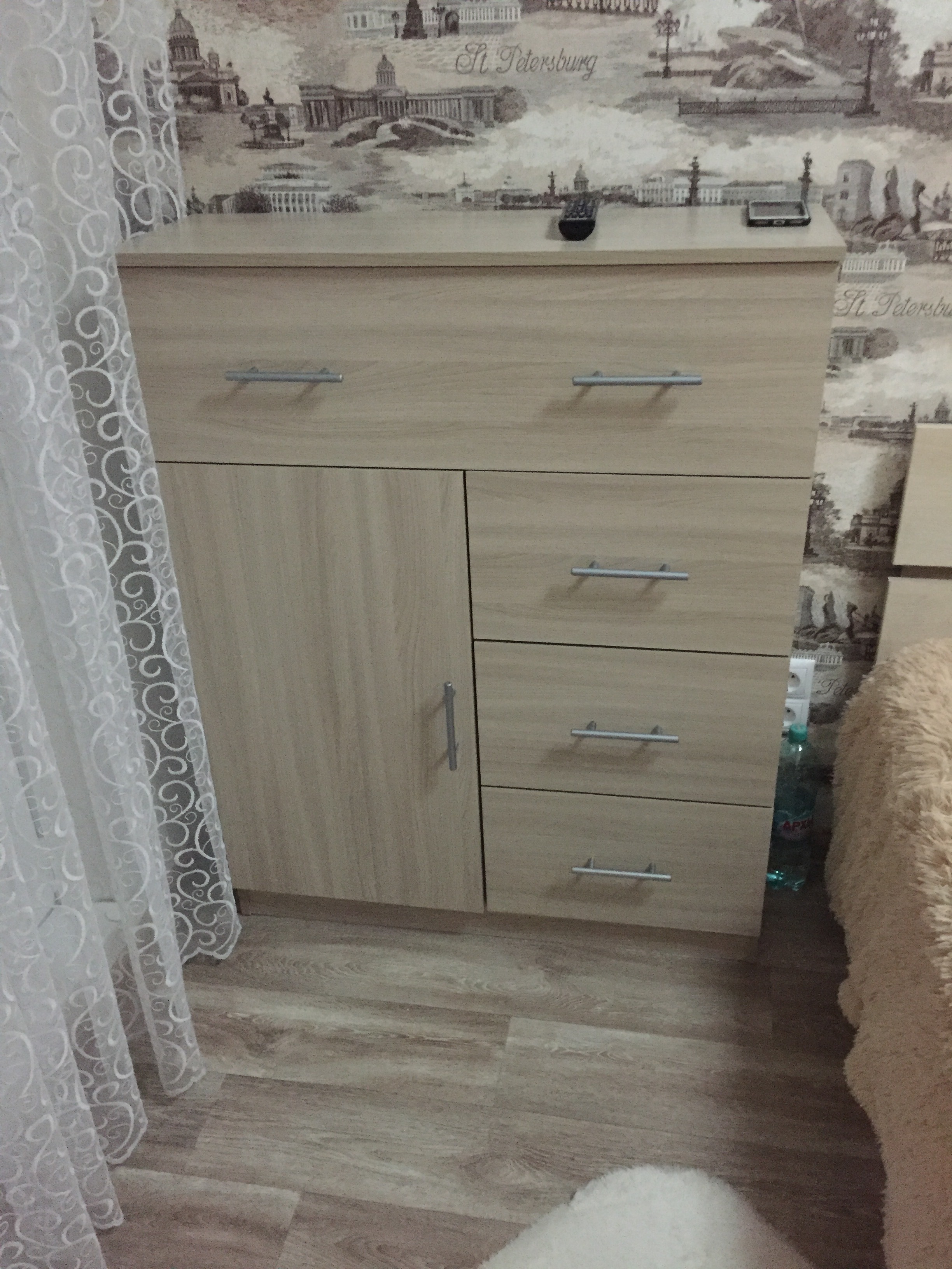 Очень довольна покупкой! Стильный, вместительный. Беру не первый раз в этом магазине мебель, самое удобное, это то, что можно выбрать свои размеры и фурнитуру. Мы брали комод шириной 180, высотой 70, грубиной 40.