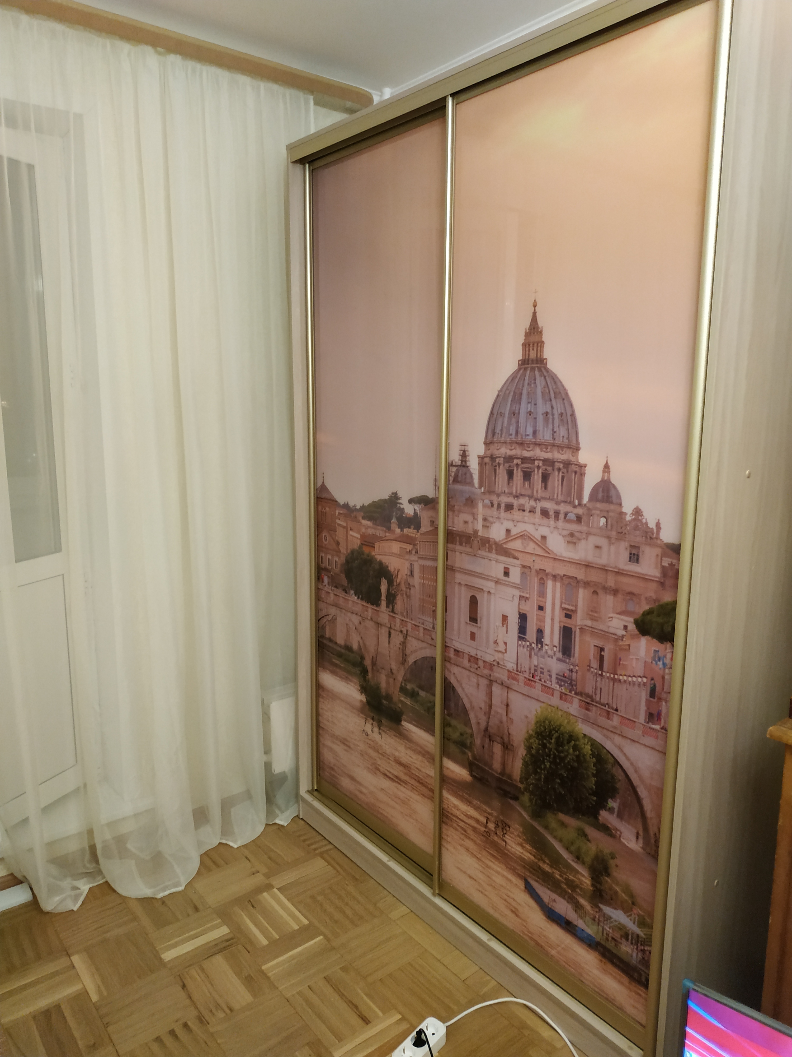 Заказали шкаф с фотопечатью, очень красиво получилось! Фото выбирали сами с сайта который посоветовал менеджер. Размер стандарт, уменьшили глубину.