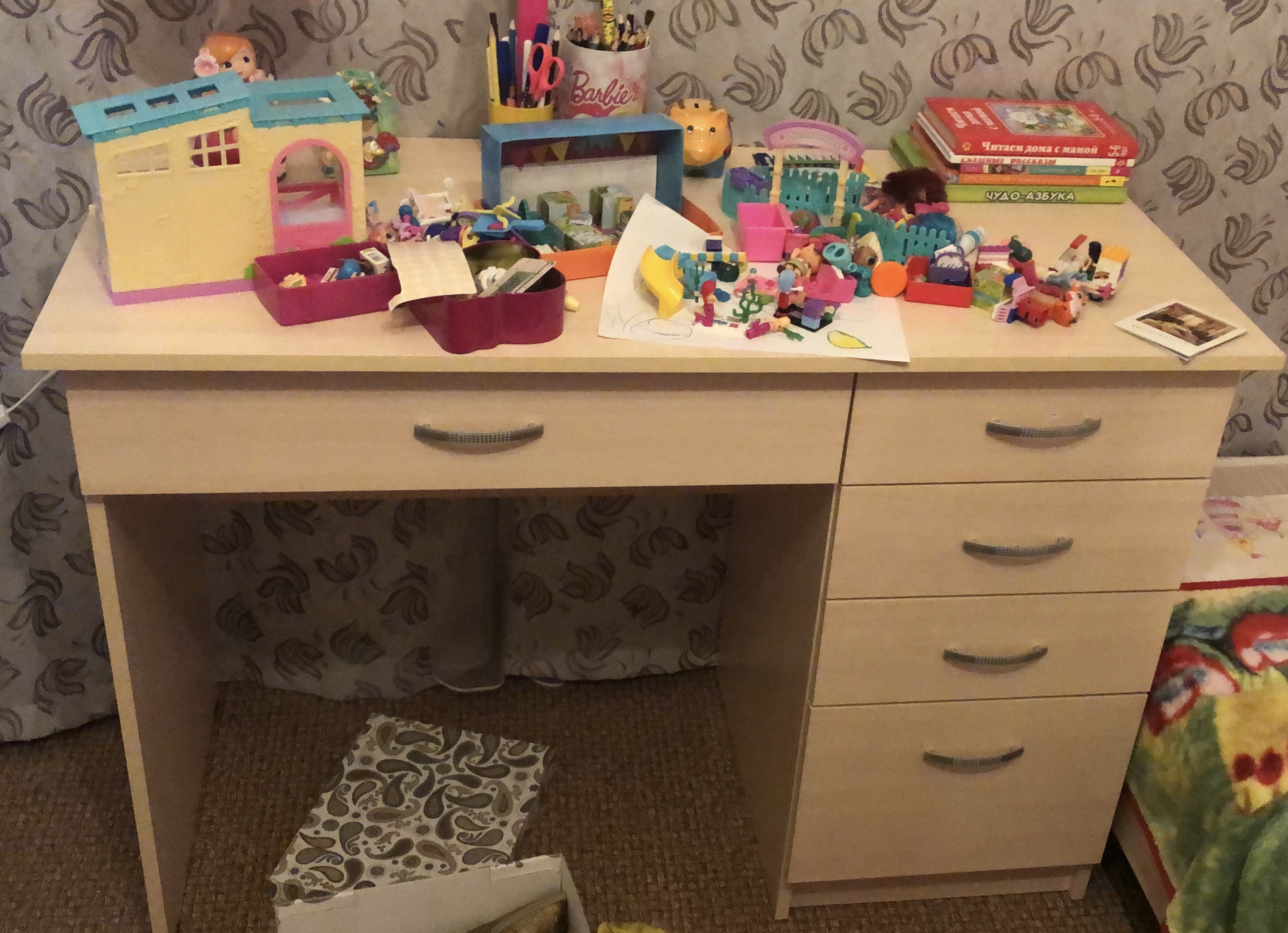 Стол соответствует описанию, быстрая доставка, легкая сборка. В пенал убираются все школьные принадлежности, главное достоинство - все внутри, а не на виду. Ребенку очень понравился. Доступная цена. Долго выбирала письменный стол для ребенка на разных сайтах, но увидев этот, сразу заказала. И осталась очень довольна!