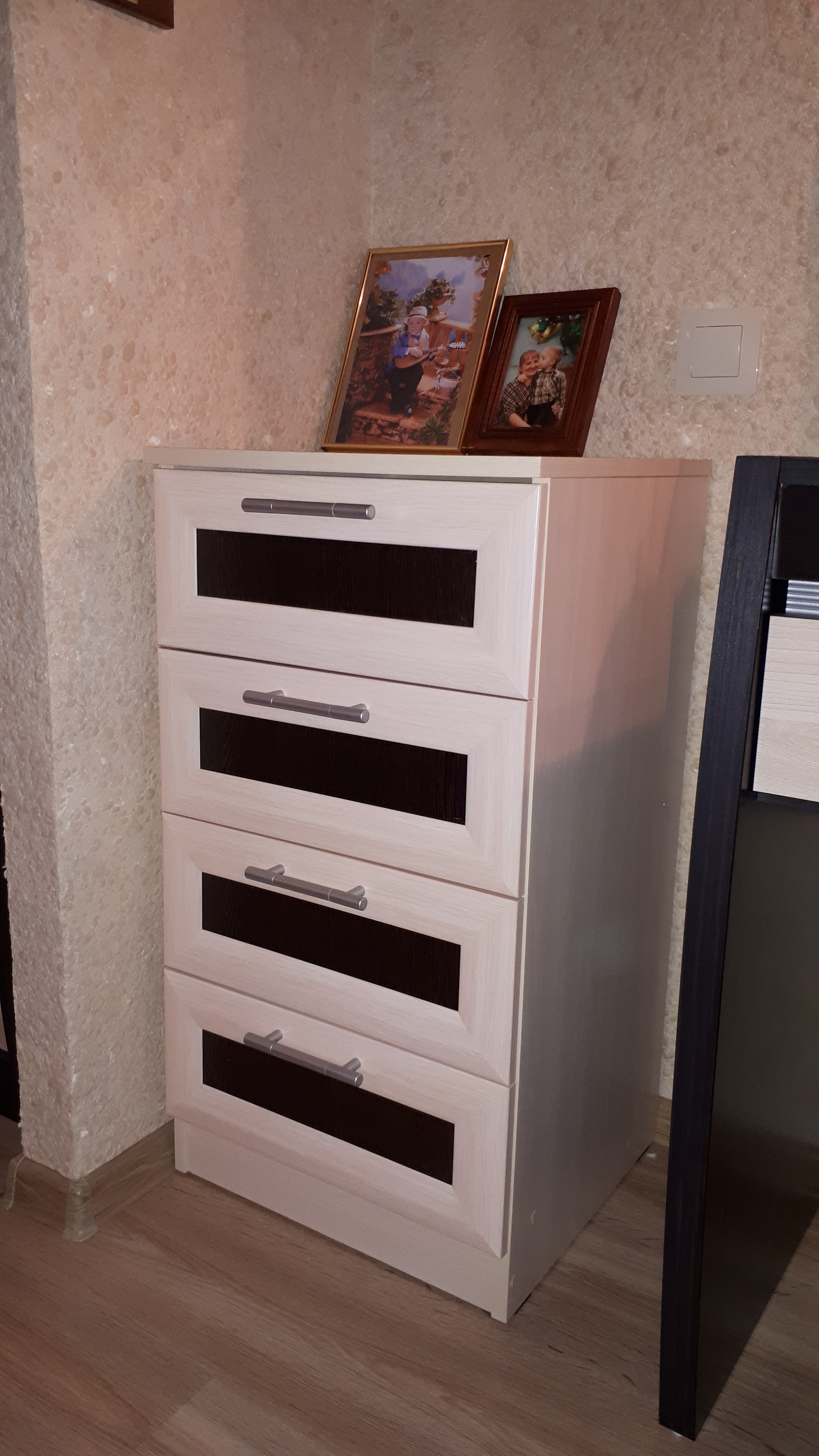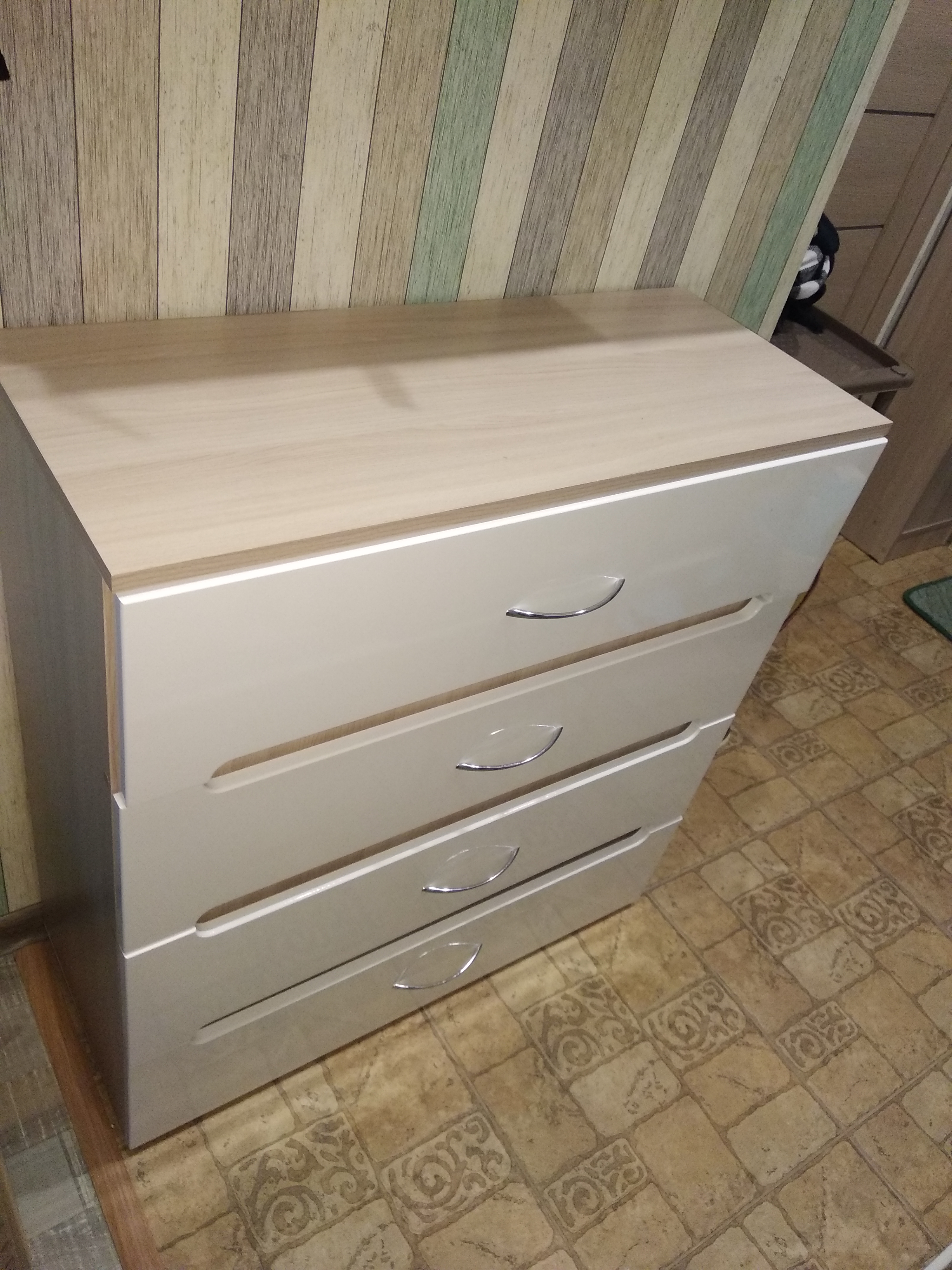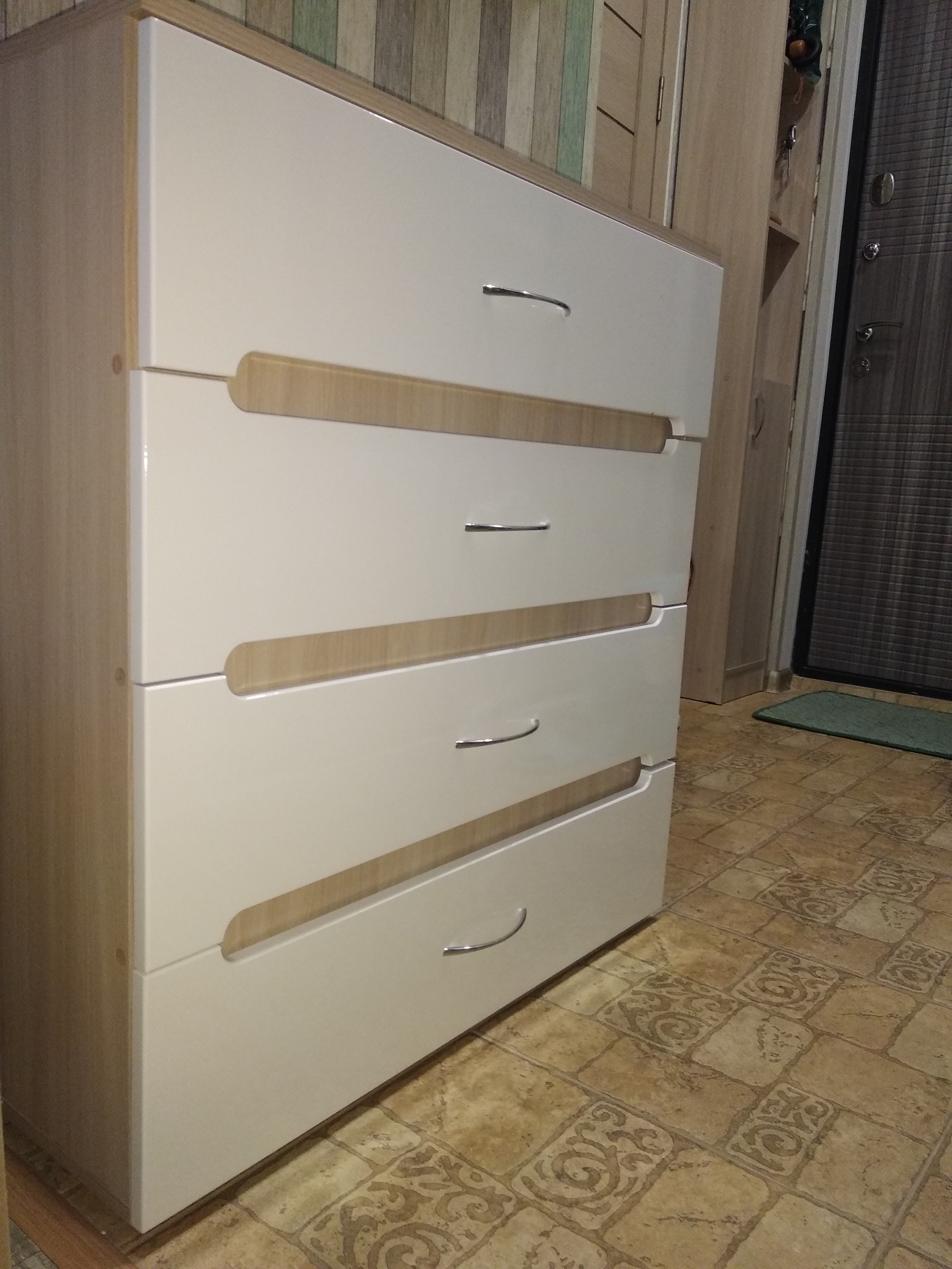Комод очень понравился. Порадовало многообразие цветов и возможность выбрать размер. Нам идеально вписался в узкий коридор. Смотрится стильно и по цвету подошел. Плавный, мягкий ход у ящиков.