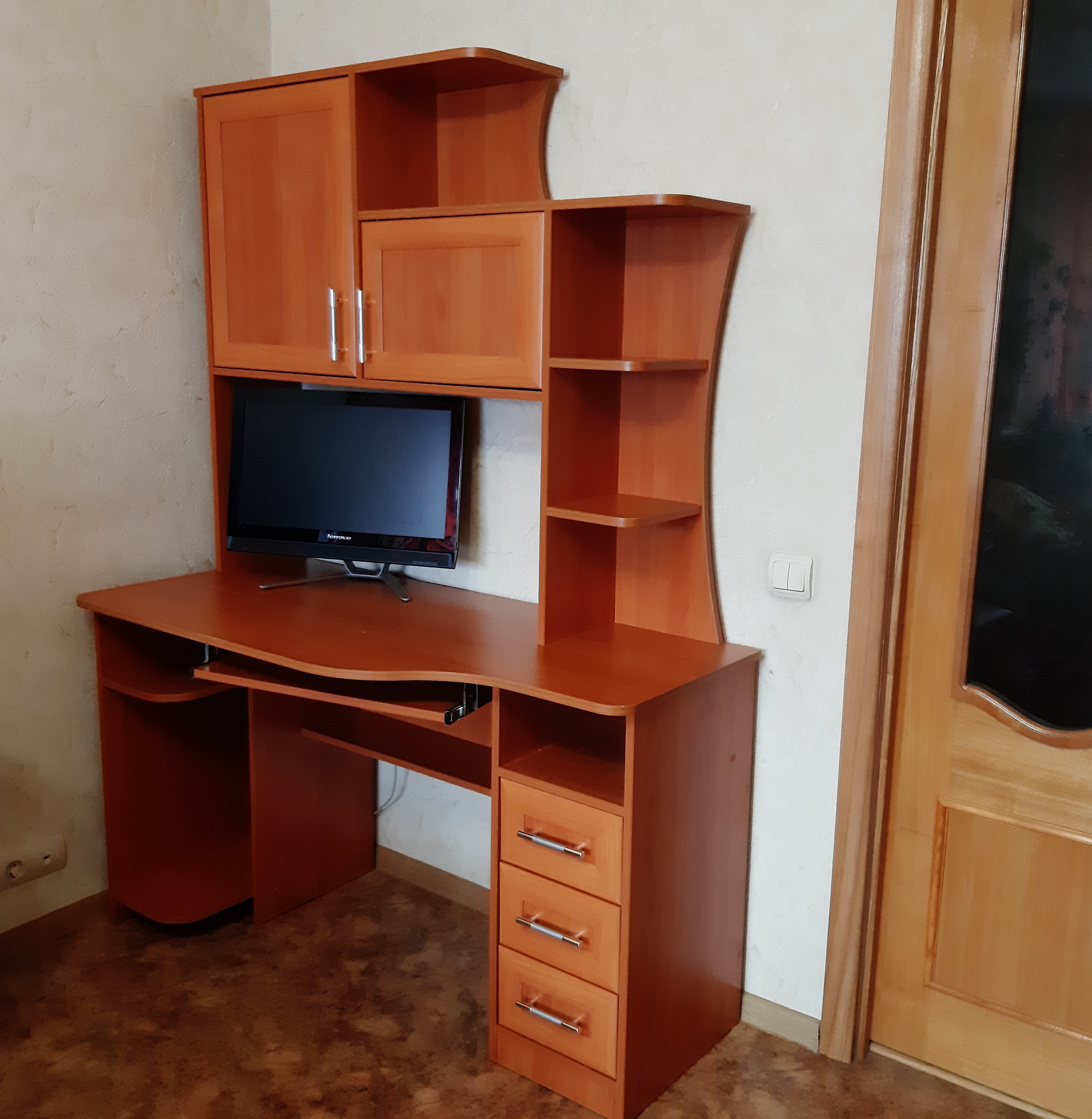 Очень довольна Вашим магазином. Приятно, что есть возможность выбора по размерам и цветовому оформлению фасадов. Мебель в комнату покупала в разное время и поэтому каждый раз было очень сложно подобрать в одном стиле. С Вашей помощью этот вопрос решился быстро. Компьютерный СК-19 порадовал своим дизайном, и при этом была возможность добавить отделку и теперь мебель в комнате как из одного комплекта. Стол функционален, хоть и не больших размеров. Для всего есть место. Всем рекомендую. Приемлемая цена и достойное качество! Спасибо!