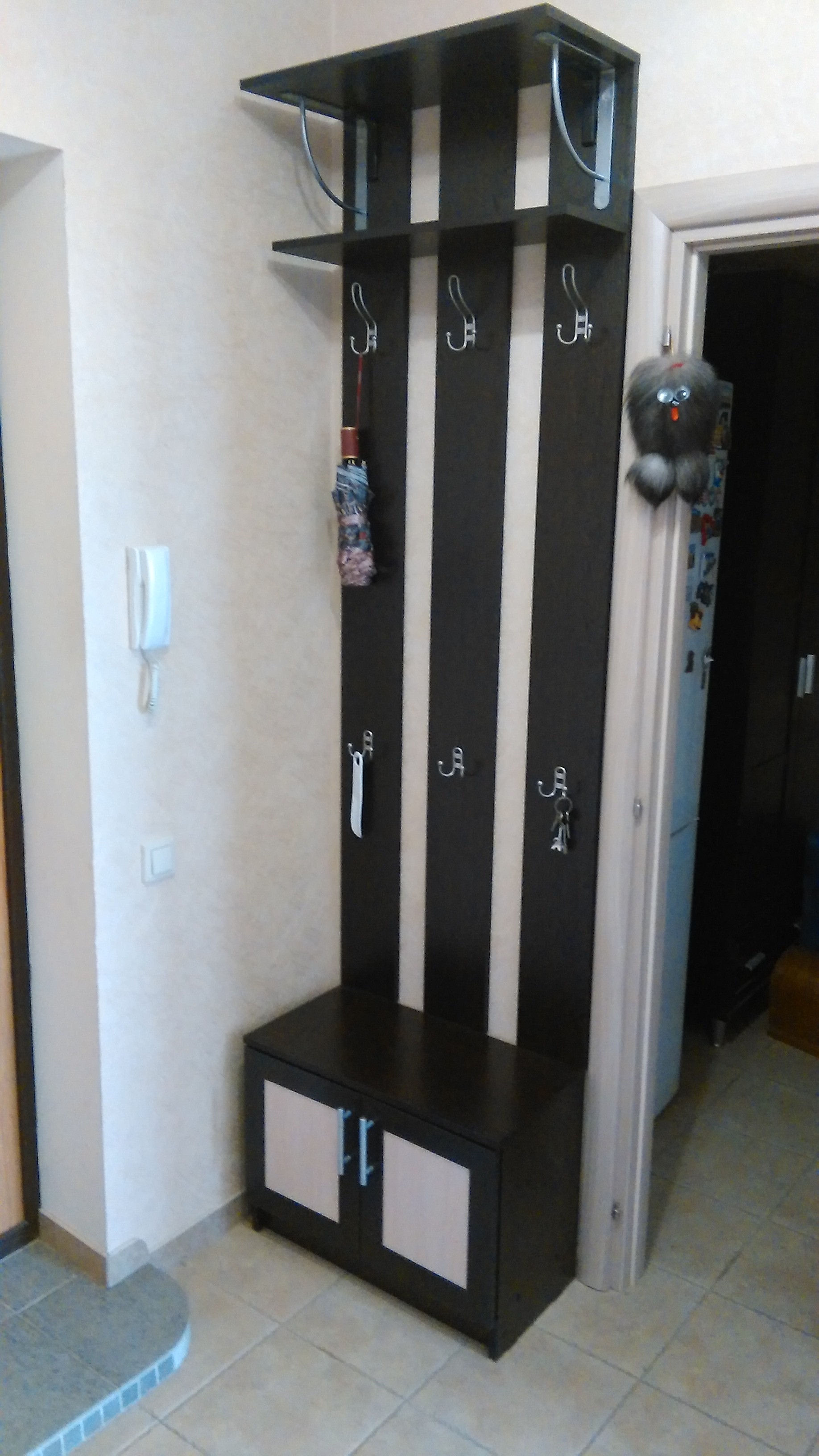 Очень симпатичная вешалка, хорошо вписалась в мой коридор. Заказ привезли во время в хорошей упаковке.  Цена соответствует качеству. На сборку вызвала своего мастера.